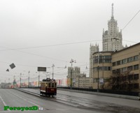 – вагон БФ № 932, вновь приобретший пусть и не историческую, как утверждают некоторые историки транспорта, но всё же более привычную для московского трамвая окраску: вишнёвый низ, жёлтый верх;