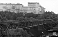 Опять потянулись томительные часы ожидания.. Всё движение началось лишь вечером. Нас прицепили к довольно тяжёлому поезду, который глубокой ночью отправился на Люблино. Медленно, но верно мы приближались к Октябрьской дороге. Из Люблино уже перед рассветом отправились на Кожухово. Ранним утром мы неспешно огибали Москву по Московской Окружной ж.д.: Кожухово, Канатчиково, Воробъёвы горы, Потылиха, Кутузово, Пресня… Я стоял в проёме паровозной будки и смотрел на дремлющий ранним летним утром город: мы ехали практически через его центр. Ласкал слух неповторимый перестук колёс двух паровозов и тендеров. После Кутузово я не удержался и достал фотоаппарат – сделать «кадр настроения»: мы проезжали по мосту, внизу лежала ленивая река Москва, а рядом параллельно нашему ещё тянулся ажурный мост соединительной ветки между Киевским и Белорусским вокзалами. Место по-своему красивое. Теперь там Москва-Сити, а были только пустыри и гаражи.