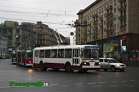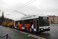 Отправление с Театральной площади задержалось на 15 минут. Более того, в троллейбусы не пустили почти никого из любителей! В салонах ехали только работники МГТ и представители прессы. Ну… и ещё кое-кто из тех, что везде пролезут без мыла! Почему? Как писали потом в сети, в СПб (к примеру), музейный подвижной состав числится на балансе как обычный линейный. Поэтому и перевозка людей в нём допускается на общих основаниях. В Нерезиновой же музейная техника вовсе не техника, а, типа, экспонаты, и перевозить пассажиров в них категорически нельзя! (А прессу и работников МГТ, значит, можно?) Тогда странно, что помешало пустить всех жаждущих в первый или последний троллейбус, которые являются линейными? Непонятно!