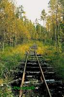Утро было тоскливое. Пользуясь кратковременными перерывами между дождём, мы наскоро позавтракали и собрали вещи. Смахнув воду с сиденья дрезины, увешались рюкзаками и отправились по узкоколейке в обратный путь, в посёлок. В воздухе висела дождевая морось. Мокрые деревья свисали над маленькими блестящими рельсами УЖД. Увы, через год на этом месте, скорее всего, останутся лишь раскуроченные гнилые шпалы, и ещё одна маленькая ниточка, ведущая в глубину заповедных лесов и болот, нарушится, прекратит своё существование. И эти рельсы, звон стыков, стелющийся над приболоченными вырубками туман останутся лишь в наших воспоминаниях…