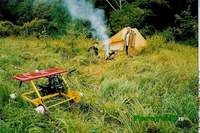 На 14-м км в густом низкорослом ельнике за последней делянкой рельсы закончились. Впереди лежало полотно разобранной УЖД – гнилые шпалы с торчащими костылями, заросшая травой насыпь. Оставив пионерку в тупике, мы решили немного прогуляться по лесу. И были правы, поскольку сразу же напали на заросли лисичек. Набрав грибов и немного размявшись, отправились в обратный путь. День клонился к вечеру, пора было определяться с ночёвкой. Лучше, чем поляна 6-го км, места нам не встретилось, поэтому и решили заночевать там. Миша остался разводить костёр и чистить грибы, мы же с Лёхой съездили в посёлок к машине за рюкзаками. Прибыв уже на закате, поставили палатку, развели большой костёр. На ужин были макароны с тушёнкой и жареные грибы. Пламя костра освещало раскинутую среди разнотравья палатку, силуэт огромной липы, поблёскивало на прячущихся в траве головках рельс заброшенной узкоколейки. Трещали сучья, журчала у ряжей вода, красные искры летели в чёрное августовское небо.